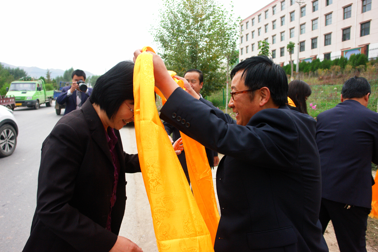 黄南教育局局长张海渊向学院常翠鸣董事长献哈达