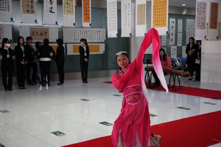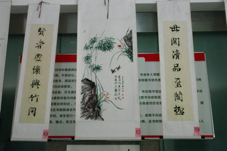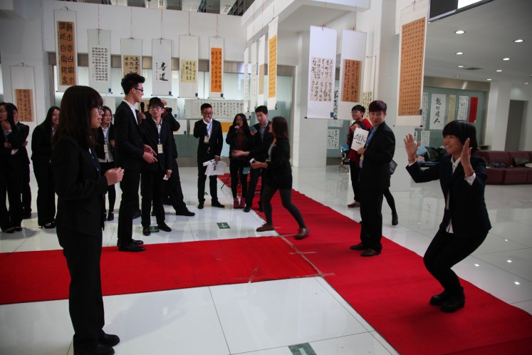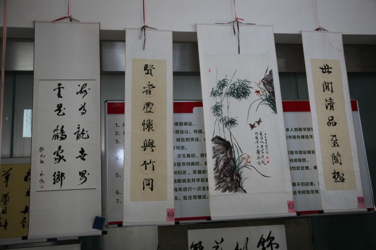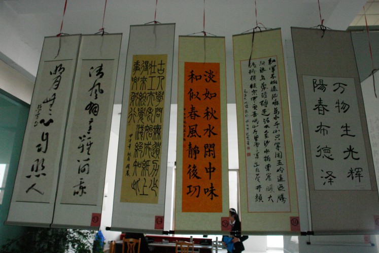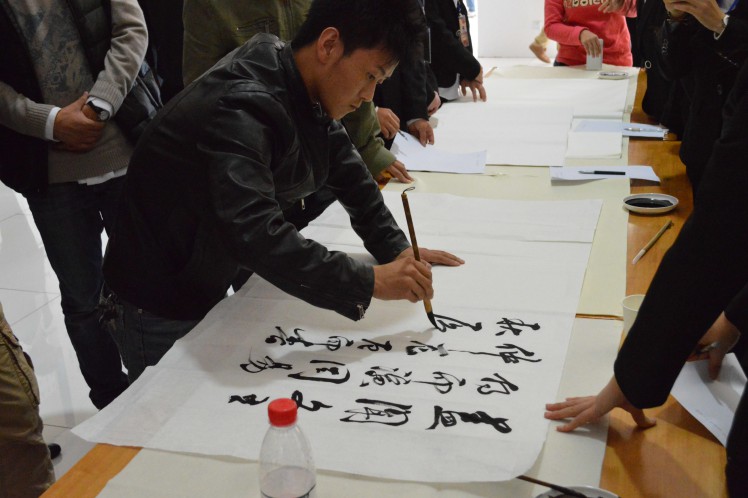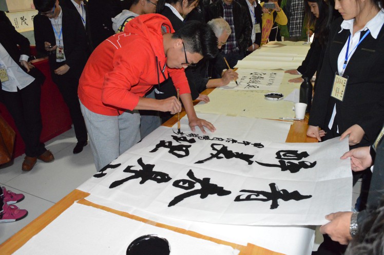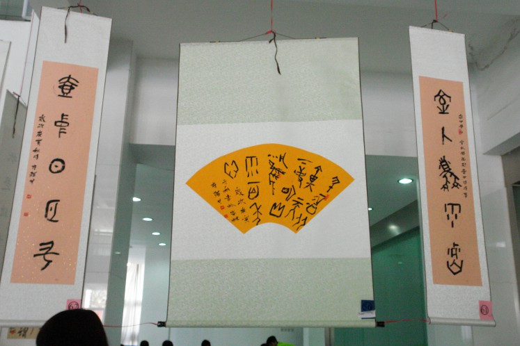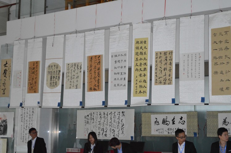 书法展在展出作品的同时,还准备了各种有趣的活动与精彩的表演。展览在充满古风古韵的节目中开幕。惊鸿舞、汉服社成员的礼仪表演、太极协会表演的太极扇等节目不仅给大家带来美的享受,同时传播优秀传统文化,为本次活动倍添光彩。活动现场还准备了猜字游戏,让参观者在游戏中体会古汉语的魅力。下午的现场书法比赛中,爱好书法的同学纷纷挥毫现场创作作品。本次书法展中的作品通过短信与网络投票的方式评选出各级奖项,方式新颖,参加展览的同学都积极参与到投票中。(文学院)