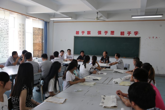 韩益主席、王心安主席对学院的聘任表示衷心感谢,并表示尽职尽责,不辜负学院的期望,努力为学院的发展作出积极贡献。随后,两位主席在书法专业教师的陪同下到书画实训室对学生进行书画交流指导。
