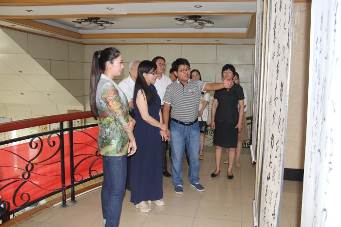 近日,艺术学院2013级书法一班、二班行草书结课汇报联展在A教学楼大厅举行。董事长、代理院长常翠鸣,副院长、曲阜校区管委会主任徐晓霞,副院长孔宪福等学院领导参观了此次展览。