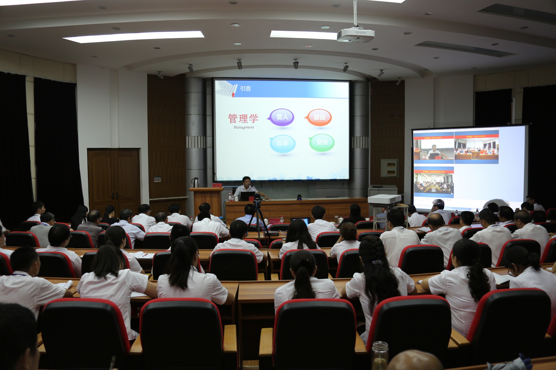 讲座中,胡继连教授从管理学的重点内容、学会用制度管人、提高个人素质(严以修身)等几个方面,结合工作、生活中的实例,系统的讲述了管理学的相关知识。他表示,作为一名高校的管理干部,一定要运用好手中的权利,不断加强个人修养,提高个人素质,科学构建学校管理的制度化、规范化建设。