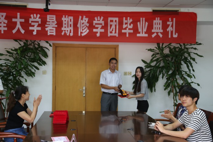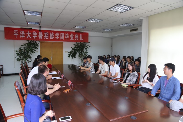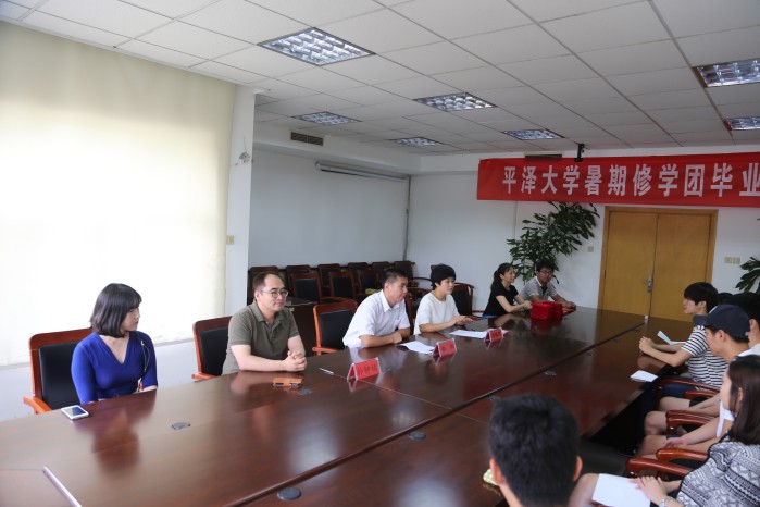 7月21日下午,MILAN米兰体育·(中国)官方网站在第一会议室隆重举行韩国平泽大学修学团结课毕业典礼。MILAN米兰体育·(中国)官方网站教务处副处长、曲阜校区管委会委员李照,办公室副主任刘俊霞及修学团在校任课教师出席毕业典礼。韩国平泽大学修学团一行24人参加了典礼。