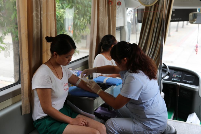 学院副院长、曲阜校区管委会主任徐晓霞第一时间亲临活动现场,慰问献血师生。上午10:00,学院师生有序地拿着体检表,挽起袖管排队等待献血最后的测试。医务人员细心地进行着抽血化验工作,献血现场有条不紊。济宁中心血站张站长为献血者讲解献血知识、注意事项,并准备了保温桶、保温杯、雨具等纪念品,这些细节使献血师生倍感温暖。