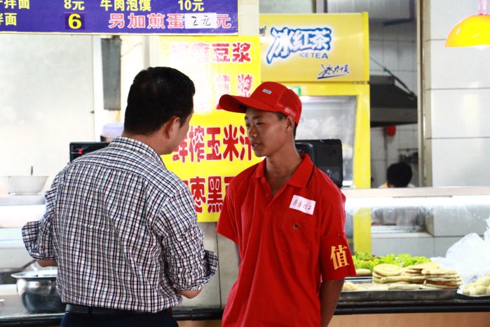 中午十二时五分,学生相继涌向食堂,餐厅中着红色制服的志愿者随处可见。此次文明岗服务内容包括,维持餐厅秩序、监督现金交易问题及协助餐厅工作人员打扫卫生等。活动开始时,青年志愿者服务团团长焦海宝说到:“以前的餐厅,一放学大家就对着就餐窗口一拥而上,毫无秩序可言。我希望志愿者的出现可以成为MILAN米兰体育·(中国)官方网站的另一道亮丽的风景线”。