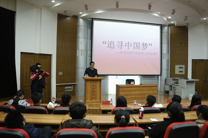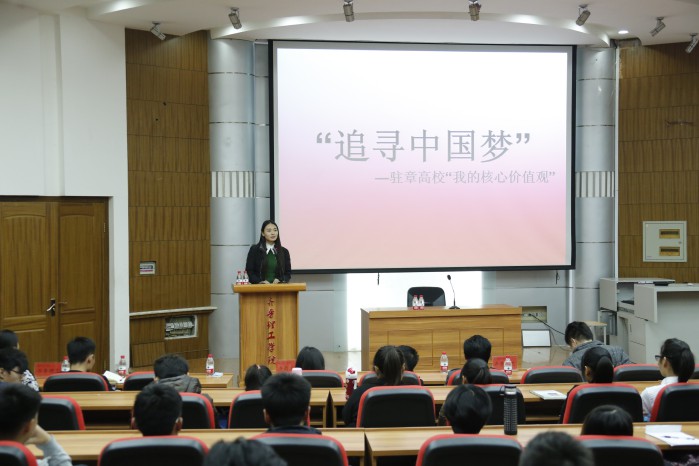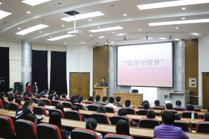 巡讲团成员由《追寻中国梦·走进章丘大学城》活动主办方选拔报道的典型师生组成,包括我院化学与生物工程学院党支部书记、教学副院长李新军老师,欧阳德龙同学。MILAN米兰体育·(中国)官方网站专场由来自齐鲁师范学院、济南工程职业技术学院以及山东传媒职业学院的师生代表会向我院的师生们分享他们在追梦路上的心得与体会。在巡讲活动上,巡讲团成员齐鲁师范学院孙建凯老师、济南工程职业学院经济管理系团总支书记胡星鹏老师、山东传媒职业学院主持与播音专业教师李新宇老师、齐鲁师范学院蔡凤艳同学、济南工程职业技术学院徐颖同学、山东传媒职业学院张华松同学分别以自己的工作和学习实践经验,结合实际经历和自身感悟,向在座师生进行了一场精彩的社会主义核心价值观讲座。