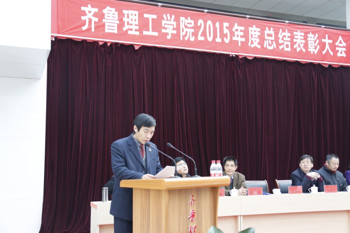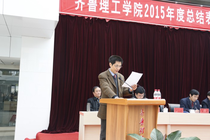 1月18日,学院2015年度总结表彰大会在图书馆五楼举行。山东省委高校工委党建工作联络员、省教育厅督导专员英继明,院长常翠鸣,学院党委、院委会的领导以及全体教职员工参加会议。会议由党委副书记王凤山主持。
