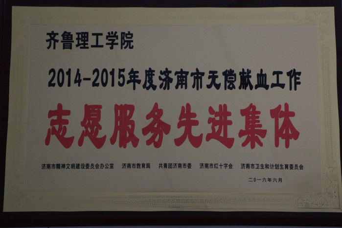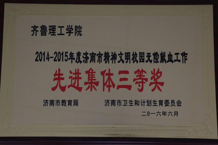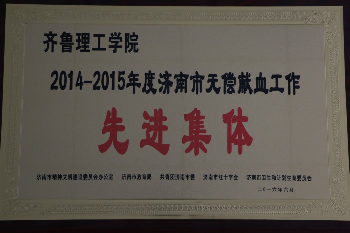 为纪念第十三个“世界献血者日”,更好的表彰先进、树立典型,激励市属高校广大教职员工和在校大学生更好的为我市鲜血事业持续发展贡献力量。6月13日,济南市第十三个“世界献血者日”暨无偿献血工作表彰会议在济南市龙奥大厦G203召开。我校共获包括“济南市无偿献血工作先进集体”等3个集体奖,“献血工作先进个人”等37个个人奖项。