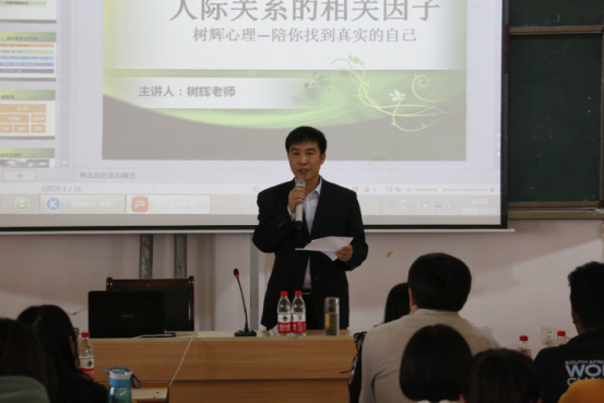 2016年10月12日下午,中国心理学家大会嘉宾,心灵成长工作坊讲师,中国心理师协会注册督导师,山东人民广播电台心理节目特聘心理专家高树辉老师做客我校“杏坛大讲堂”,为我校学生作了“冲出人际困境”大学生心理健康报告。