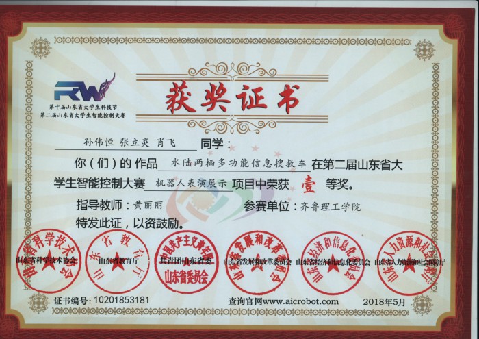 山东省大学生智能控制大赛是为响应党中央、国务院关于推进“大众创新、万众创业”的重要决策,通过本次竞赛活动,参赛学生的创新意识、实践能力、团队协作精神等综合素质均得到了很大提升,进一步推动了我院“以赛促教、以赛促学、赛学结合”的实践教学育人模式的改革和推动。
