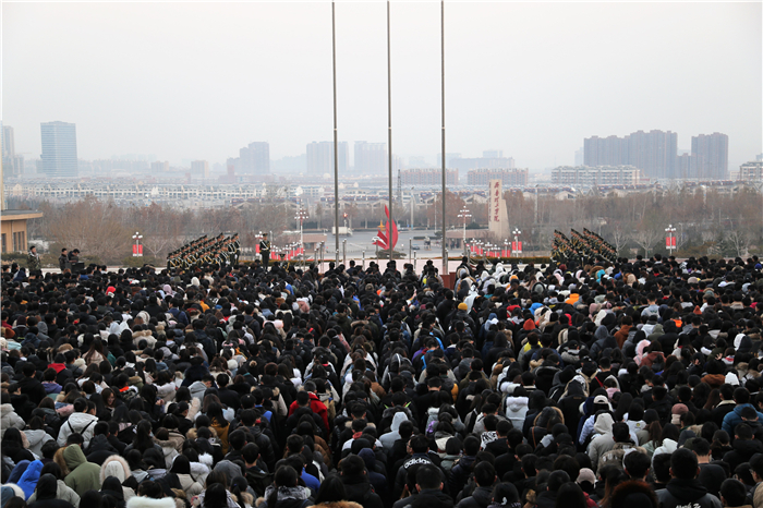 12月13日,是国家设立的“南京大屠杀死难者国家公祭日”。为铭记祖国曾遭受的苦难和耻辱,激发当代大学生的爱国热情和民族使命感,我校在三级平台举行主题升旗仪式。副校长赵云生,校长助理韩衍顺,学团工作部相关人员以及各二级学院师生代表参加纪念活动。