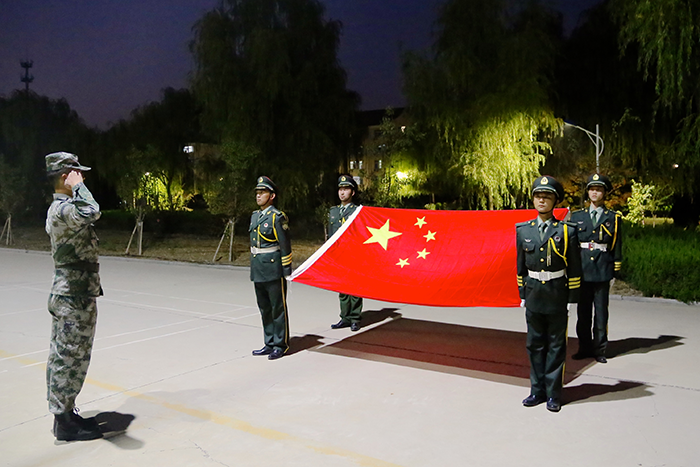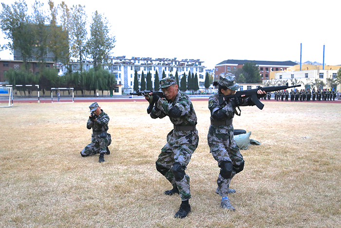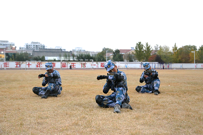 在2020级新生汇报表演中,退役军人表演的《战术演练》,战士们卧倒匍匐,在荆棘中迅速穿梭,指令警鸣、实战训练、解救人质激动人心,现场观众领略了军人风姿,阵阵掌声响彻校园。10月29日,自训教官圆满完成了2020级军政训练各项任务,向学校递交了一份满分答卷,希望战士们以军人的坚强意志和拼搏精神,在返校复学的齐鲁大地上再谱新篇。