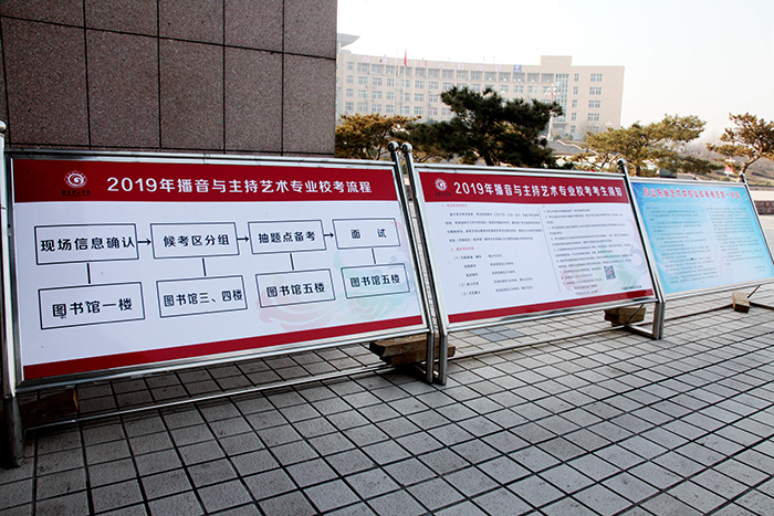 2019年我校校考专业分别为书法学、播音与主持艺术、空中乘务,在广东、河北、新疆等省(自治区)设立校考点。截至目前,山东省内播音与主持艺术、空中乘务两专业校考工作已结束,共计4570人考生报名参加考试。考前,学校利用网站、官方微信、官方微博等校园媒体在第一时间发布了招生章程、考试须知等一系列相关信息,同时利用热线电话等多种方式提供咨询,为考生报考提供专业的服务与指导。