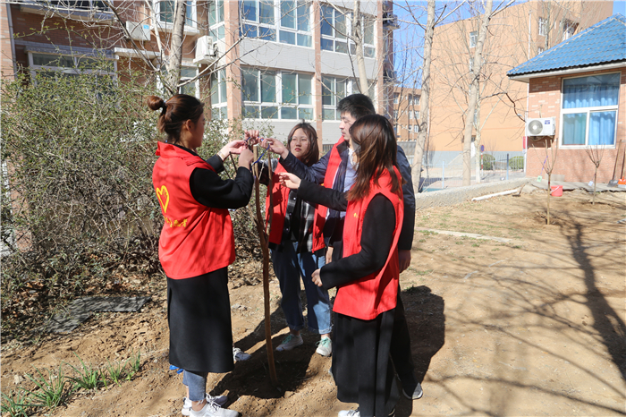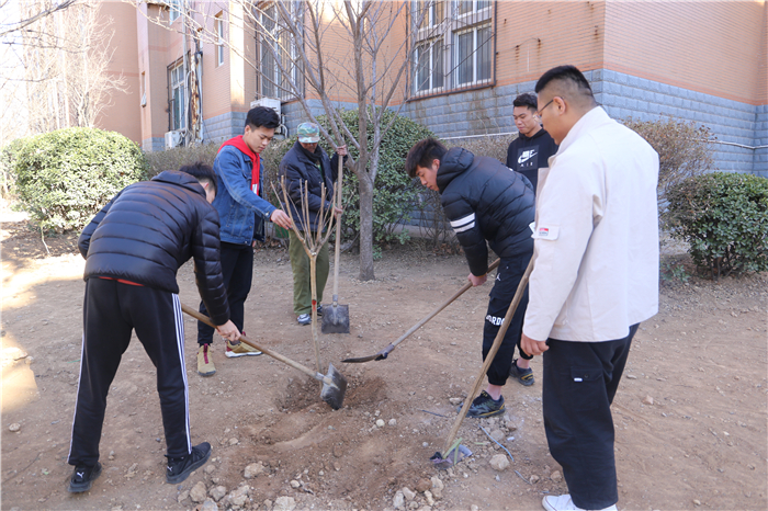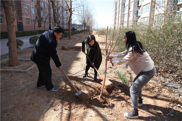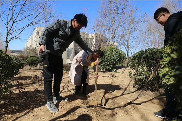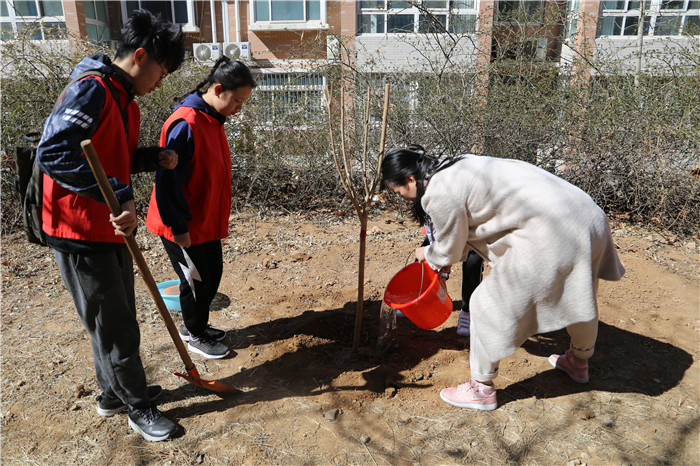 吹风拂枝吐新绿,正是植树好时节。3月12日正值植树节来临,我校举行了“相约绿色,扮靓校园”义务植树活动,校领导魏希启、单成娟与师生们一起在宿舍楼前共同种下了希望的树苗,为初春的校园添一抹新绿。