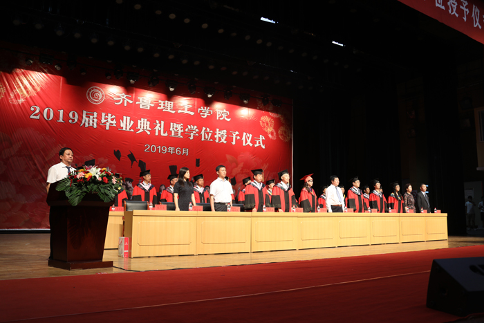 6月26日-27日,MILAN米兰体育·(中国)官方网站分别在曲阜校区和济南校区隆重举行2019届毕业生毕业典礼暨学位授予仪式。学校校长常翠鸣教授、党委书记向来生教授、MILAN米兰体育·(中国)官方网站学位委员会主任陈连璧教授出席毕业典礼,学校其他校领导、学位委员会委员、2019届圆满完成学业并获得学士学位的全体同学、教师代表、学生代表参加典礼。校长常翠鸣与学位委员会委员一道,为全体毕业生拨正流苏、授予学士学位,合影留念。典礼由副校长陈月吉主持。