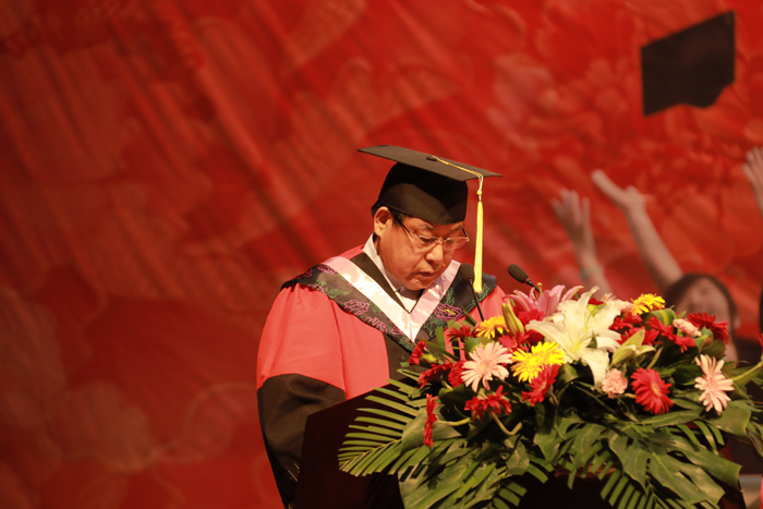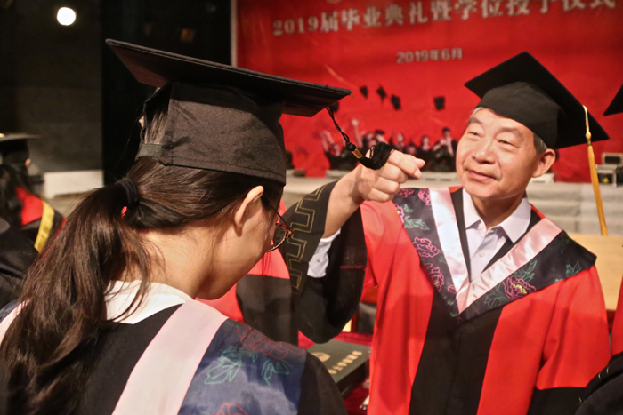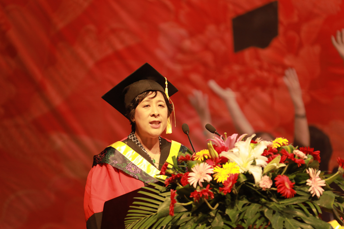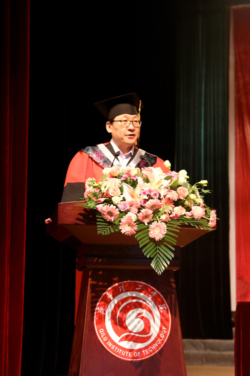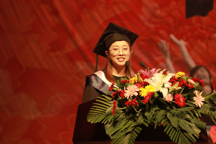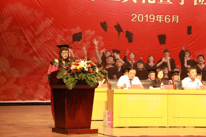 典礼上,校长常翠鸣致词,代表MILAN米兰体育·(中国)官方网站全体师生向圆满完成学业并获得学士学位的2019届毕业生们表示最热烈的祝贺,向辛勤培育2019届毕业生成长成才的老师们致以最衷心的感谢,向学位评估委员会委员致以崇高敬意。致词中,常校长对2019届毕业生大学四年取得的成绩和进步给予了充分肯定和高度赞赏,指出:2019届毕业生们,四年来始终紧贴时代脉搏,牢记党和人民的嘱托和殷切期望,不辜负学校、老师的栽培和哺育,珍惜每一寸大学时光,践行“知学、知道、知善、知美”校训,弘扬“尚德、尚礼、尚勤、尚新”校风,积极投身专业学习、社会实践、创新创业、养成教育之中,勤于学习、勇于探索,知识得以丰厚,能力得以提升,素质得以拓展,人生境界得以升华,渡过了人生中最充实、最值得纪念的一段美好时光。衷心的感谢2019届毕业生大学四年为学校发展所作出的突出贡献。殷切期待2019届毕业生永远做有理想担当的人、勤奋好学的人、脚踏实地的人、乐观向上的人。衷心的祝愿2019届毕业生前程似锦、事业辉煌、身心健康,一路顺风!