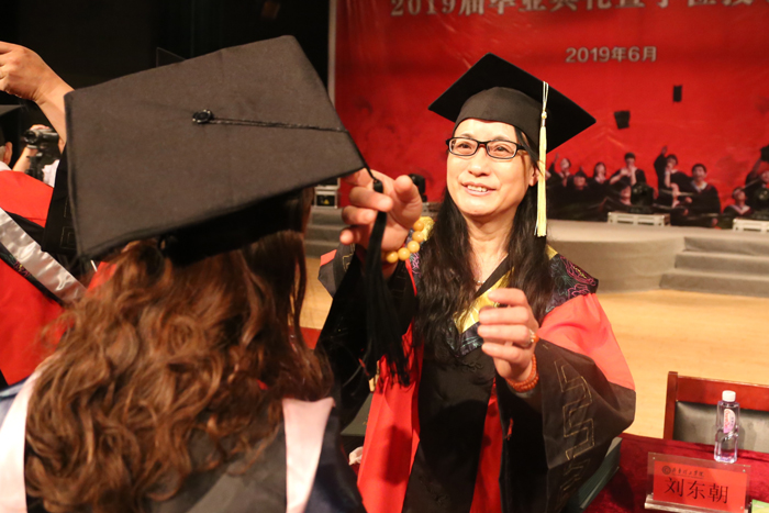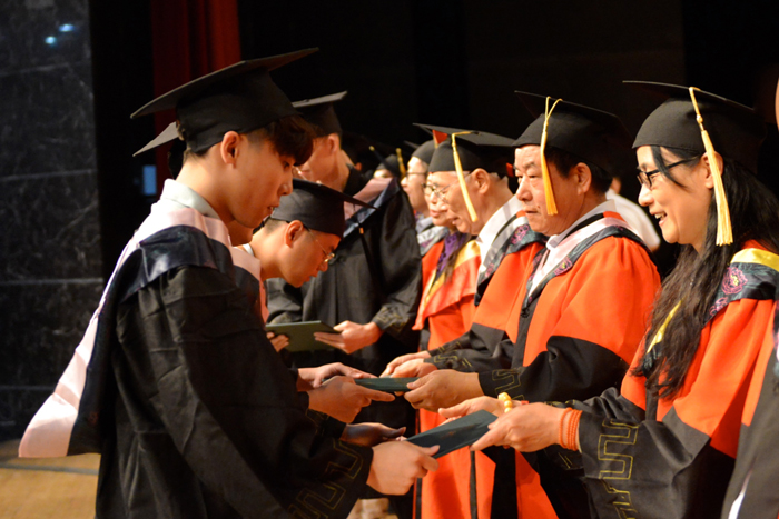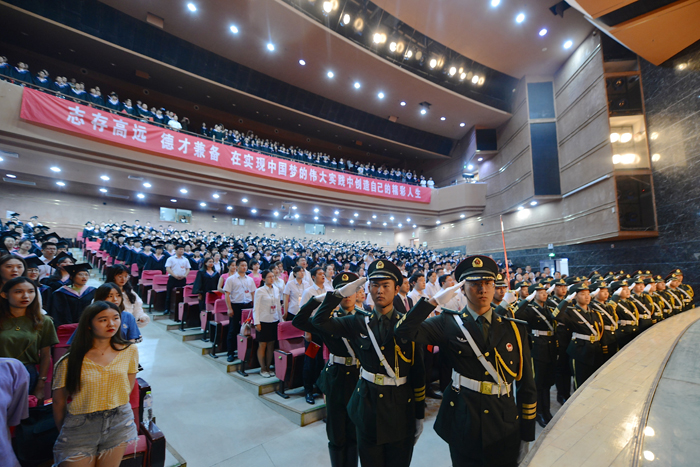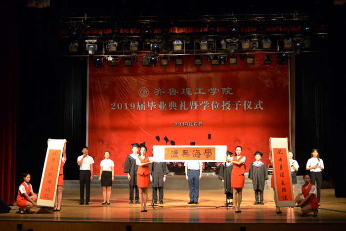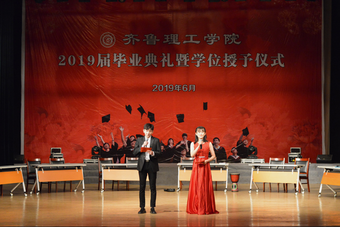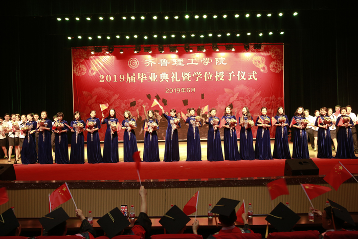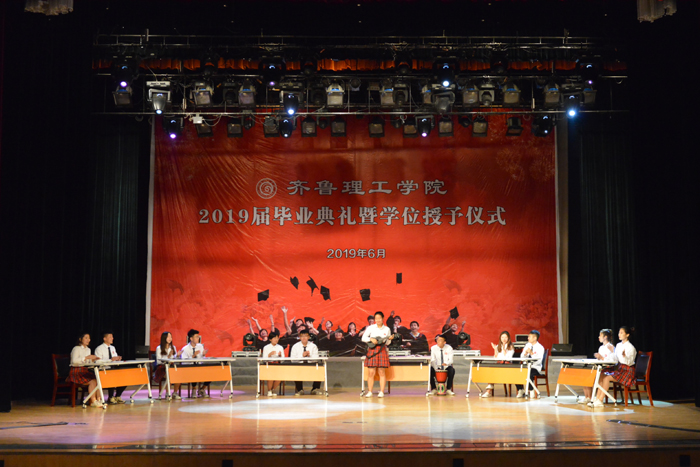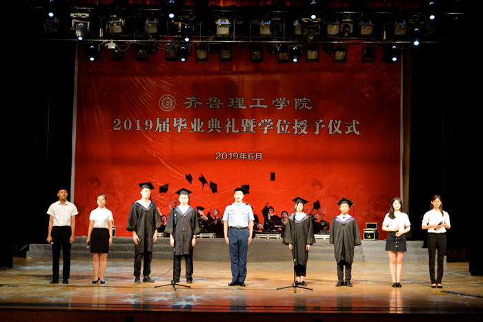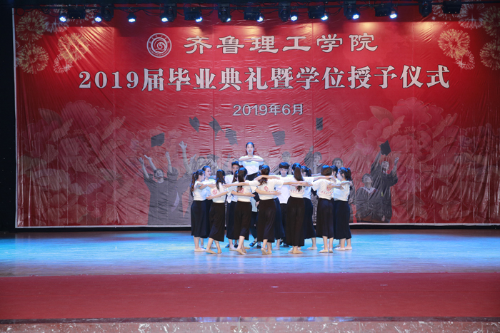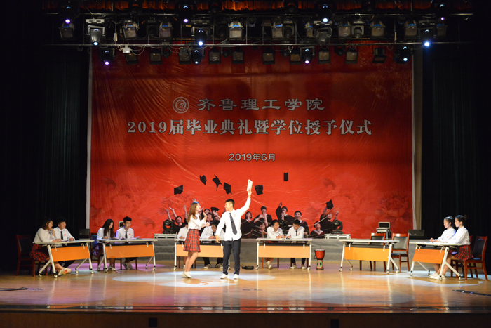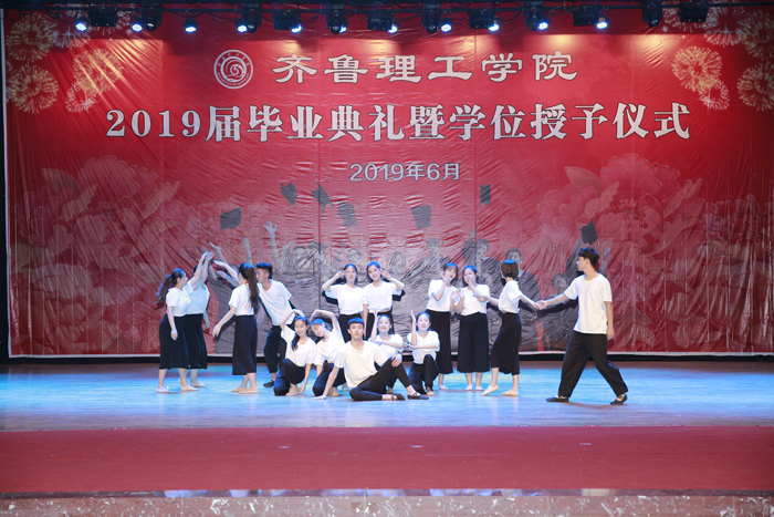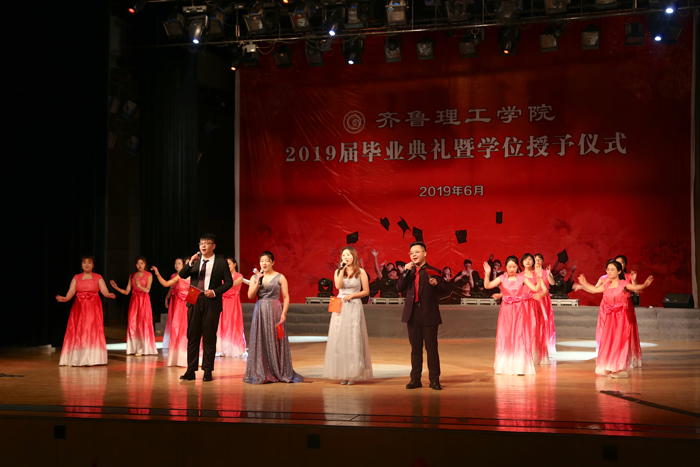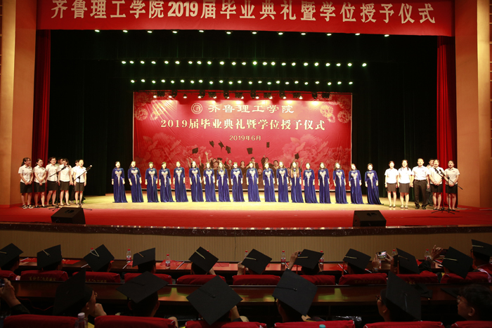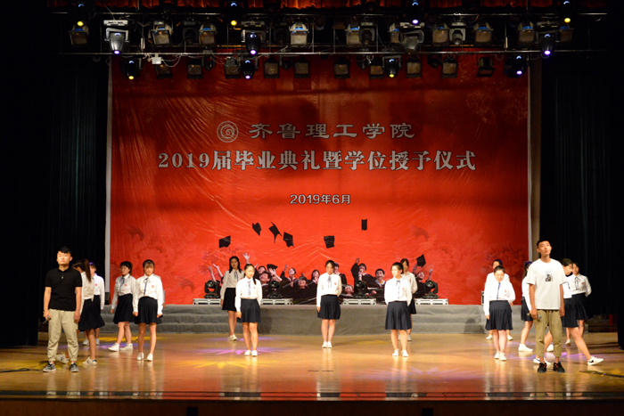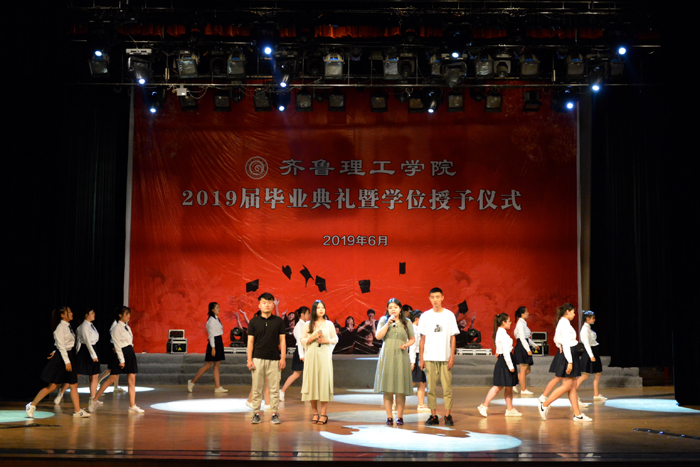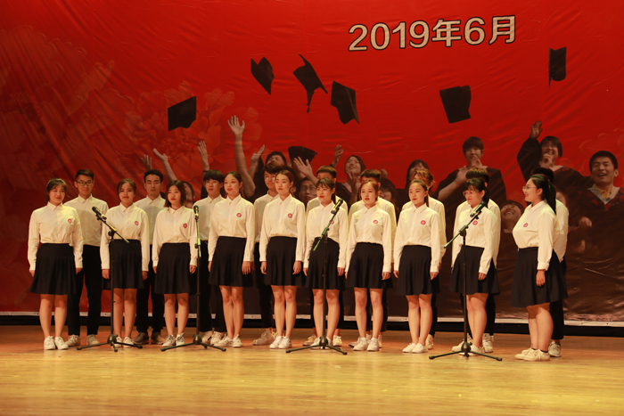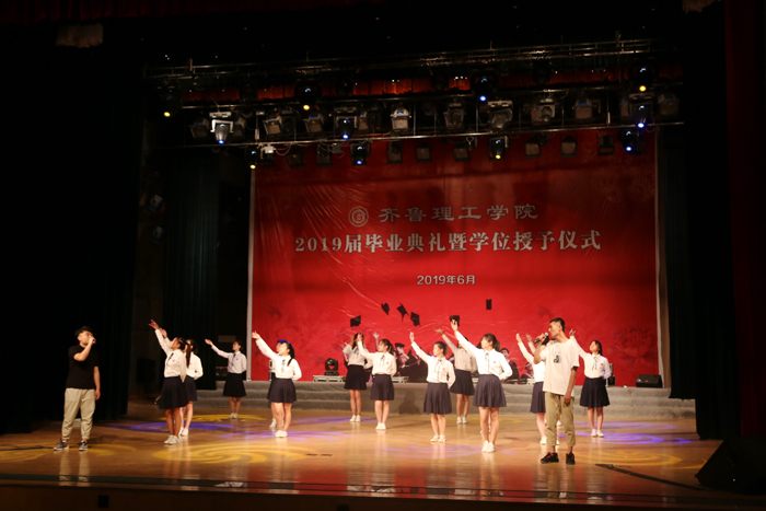 授予学士学位仪式结束后,学校领导、师生及毕业生们共同上演了精彩的文艺节目,为即将告别母校走向社会的2019届毕业生们送行。典礼在全体师生同唱《我和我的祖国》中圆满落幕。