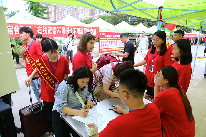 迎新工作中,虽然报到的人数很多,但是各部门、各学院紧密配合、各尽其责,报到现场井然有序,确保了新生在报到、注册、缴费、住宿等过程中零障碍。全体齐鲁理工人不辞辛劳、热情服务,及时为新生及家长解决问题,获得频频点赞。