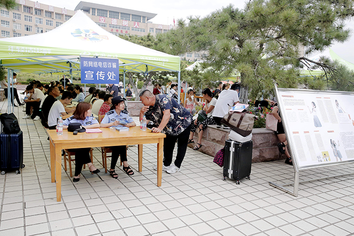 搭建帐篷、设立休息区,为新生和家长提供饮水等各项服务;设置防诈骗宣传处,向广大新生和家长介绍防骗知识,规避安全风险。