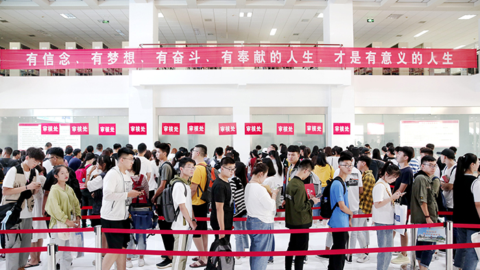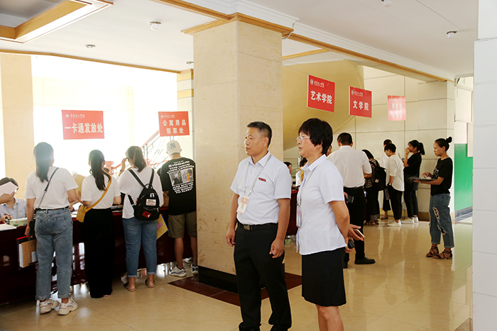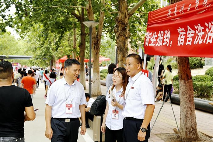 新生报到期间,校领导亲临现场指导工作。在新生报到咨询处和各学院迎新工作站点前,校领导慰问一线工作人员,认真听取有关部门和学院负责人介绍新生报到情况,细致询问新生报到人数、绿色通道办理、住宿安排等情况,叮嘱有关部门和各学院一定要高度重视,妥善安排,把工作进一步做实做细,遇到问题及时反馈并尽快解决,努力给新生及家长提供热情、周到、细致、贴心的优质服务。