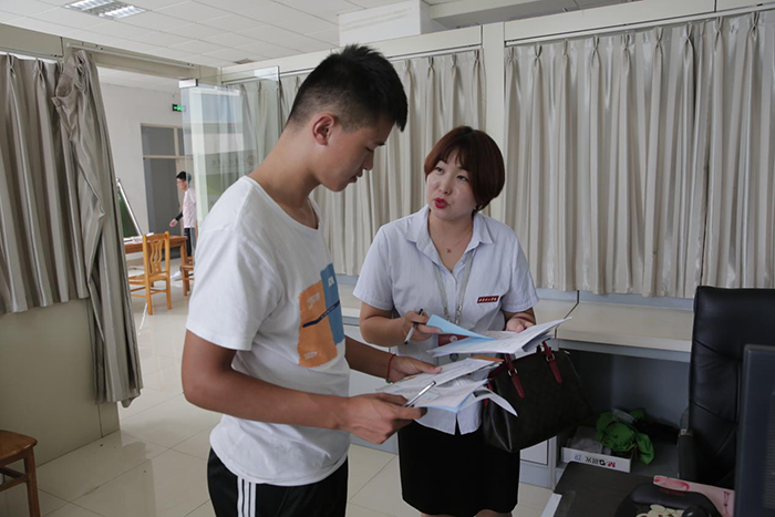“绝不让任何一名品学兼优的学生因家庭经济困难而辍学”,这是学校对家庭经济困难新生的承诺。来自临沂临沭的周珍子同学,父母因病致残,家中还有年迈的奶奶,家庭收入主要来自种庄稼,她告诉我们:在入学前我就仔细阅读了录取通知书的相关材料,及时与学校老师沟通,详细说明了家庭情况,真心感谢学校能为我提供了助学金,助我顺利入学。说到这时周珍子同学湿润了眼眶,也许是积压在心底的那一份不安,也许是对未来的期许,让这个瘦小的肩膀承担了太多这个年纪不能承受的重担。