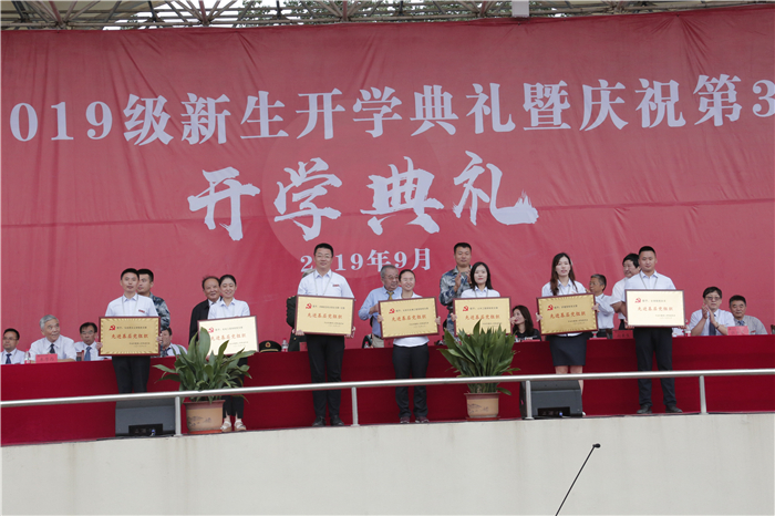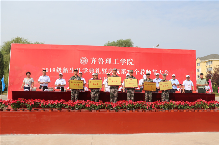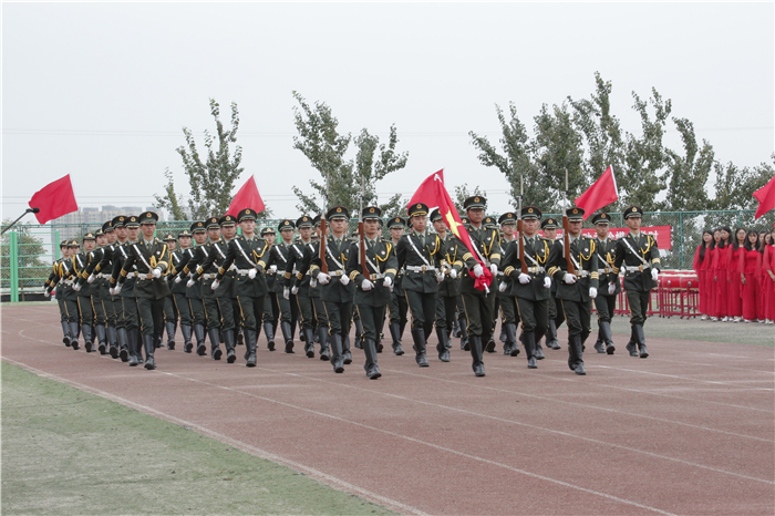 典礼首先举行了阅兵式,2019级新生代表、教师代表先后发言,对新生军政训练先进集体和个人进行了表彰,全体新生在国旗下向祖国庄严宣誓。典礼上同时表彰了省级比赛获奖教师、“最美教师”“师德标兵”,全体教师面向国旗郑重承诺,不忘初心、牢记使命,为培养高素质应用型人才不懈奋斗。