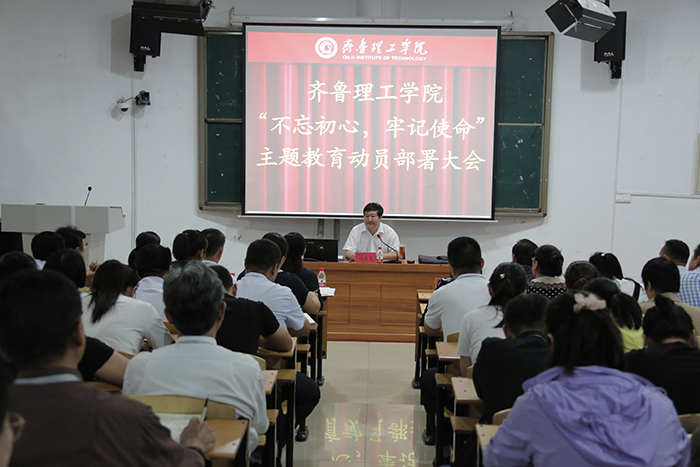 9月19日下午,我校在图书馆一楼圆阶教室召开“不忘初心、牢记使命”主题教育动员大会,传达学习全国、全省“不忘初心、牢记使命”主题教育工作会议精神,并对学校开展主题教育进行动员部署。校党委委员和有关校领导以及全体教师党员参加会议。会议由组织部长李大华主持。