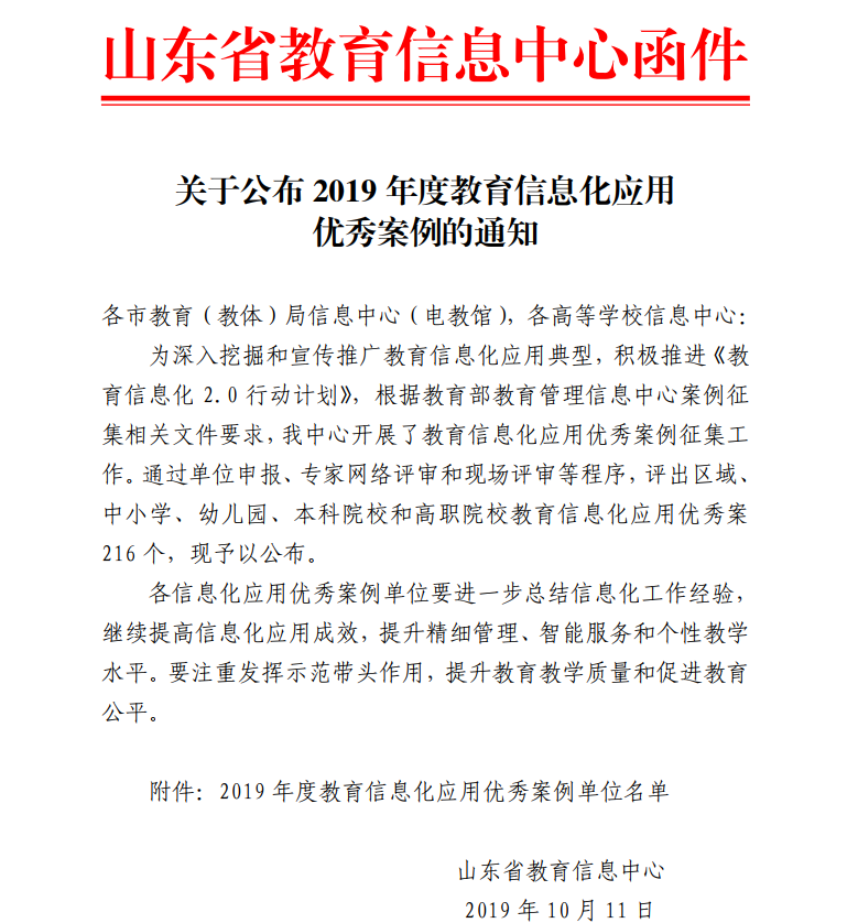 六、学校智慧化校园建设获评山东省教育信息化应用优秀案例