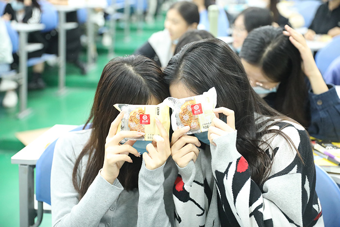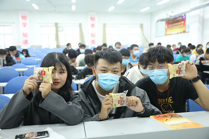 9月29日晚,教学楼各教室内弥漫着喜庆和甜蜜的气息,各学院把饱含学校温情的三种口味的“月饼”一一发放到同学们手中,每一位领取月饼的同学们脸上洋溢着惊喜与激动,每一声“谢谢”都浸满了幸福的味道,现场洋溢着浓浓的节日氛围。