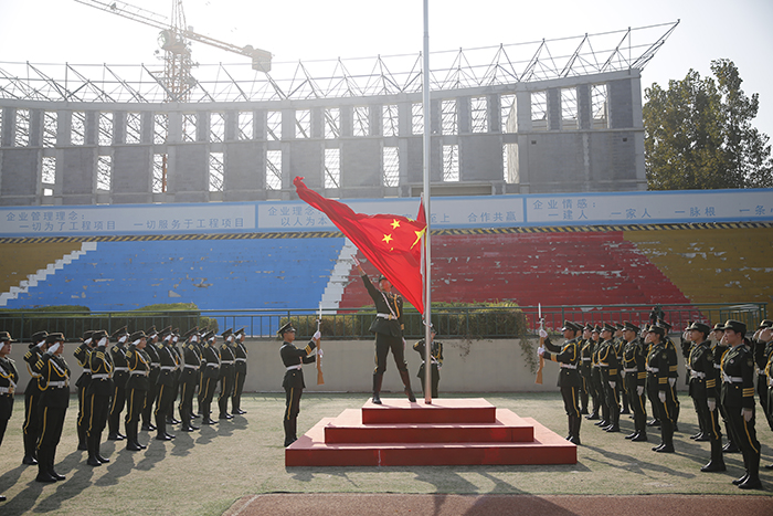“向国旗,敬礼!”国旗护卫队步伐坚定,英姿焕发,五星红旗冉冉升起,党委书记向来生郑重地向军训团授军训团团旗,2020级新生(第二批)军政训练正式开始,吹响了大学生活开启的集结号。