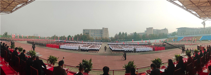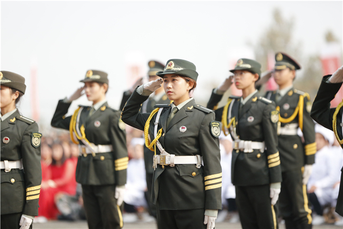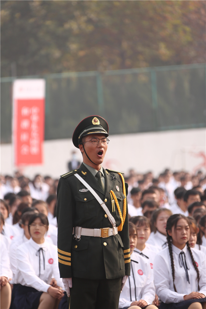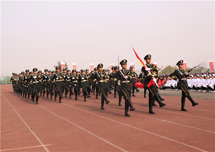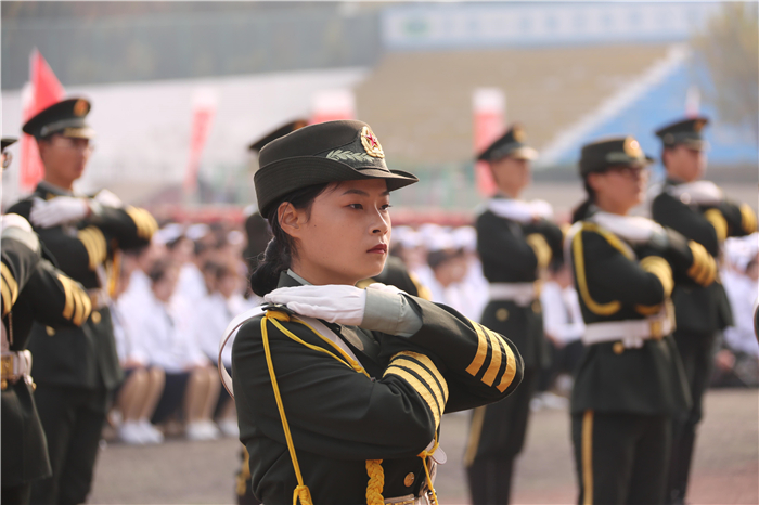 伴随着激昂的军歌《时刻准备着》,学校仪仗队进行了精彩的汇报表演。他们气势高昂、神情坚毅、目光如炬、动作整齐,展现了齐鲁理工学子靓丽的青春风采,赢得现场阵阵掌声。