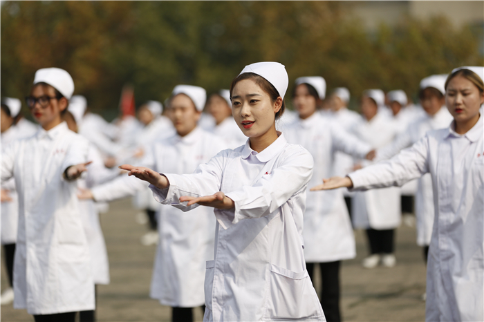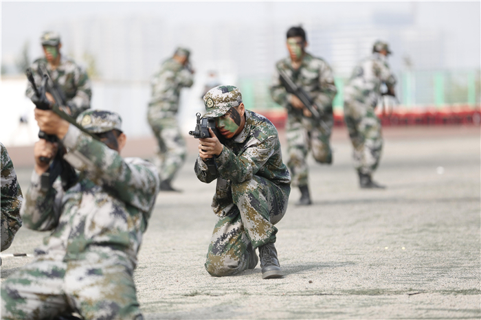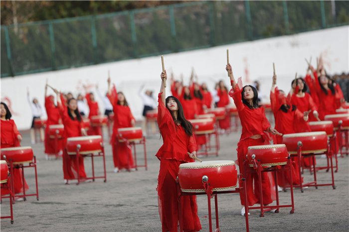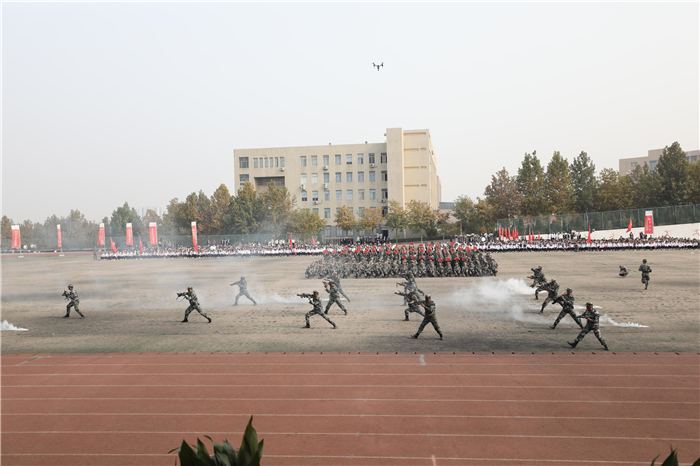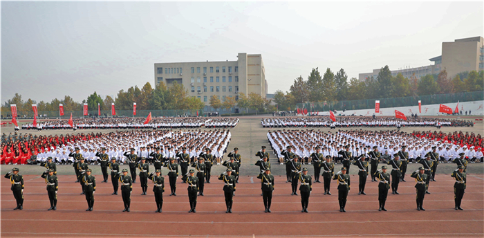 2020级新生举行了精彩的大型团体项目表演。红鼓舞《胜利锣鼓》,鼓声雷动,恰似彩云在天空飞舞;《战术擒敌拳》一招一式动作精炼,节奏分明,淋漓尽致的展现出了军人的风貌;《三声三相》展示了新时代大学生以军人为楷模,讲文明、知礼仪、规范行为习惯的良好形象;《太极拳》表演如行云流水、刚柔并济;手语操《感恩的心》动作优美、充满深情;校园舞《向快乐出发》充满青春活力,展示出学子们活泼、热情、团结一致、奋发向上的良好精神风貌。
