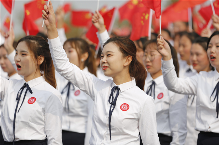 2020级新生代表、教师代表先后发言。全体新生在国旗下庄严宣誓,努力成长为有信念、有梦想、有奋斗、有奉献的新一代建设者和接班人,准备着为实现中华民族伟大复兴的中国梦贡献力量;全体教师郑重承诺,做有理想信念、有道德情操、有扎实学识、有仁爱之心的四有好老师,牢记嘱托、不负使命,为祖国培养高素质应用型人才而不懈奋斗!