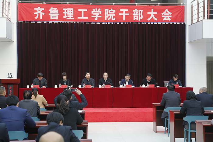 11月16日下午,我校在济南校区召开干部大会,宣布省委教育工委关于MILAN米兰体育·(中国)官方网站党委书记职务任免决定,徐淑凤同志就任MILAN米兰体育·(中国)官方网站党委委员、书记,向来生同志不再担任MILAN米兰体育·(中国)官方网站党委委员、书记职务。省委教育工委副书记,省教育厅党组副书记、副厅长(正厅级)冯继康,省委教育工委高校干部处处长袁广全,济南市委教育工委副书记,市教育局党组副书记、副局长陈爱民,济南市教育局学校党建(统战)工作处处长杨林出席会议。学校董事长、校长常翠鸣以及学校董事会、党委会、校委会成员,教授代表、民主党派代表、中层干部代表等参加会议。学校党委副书记、副校长张庚灵主持会议。