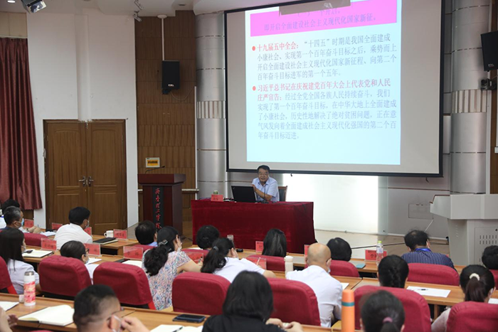 6月22日,我校邀请到山东省宏观经济研究院副院长、研究员高福一来校举办山东省第十二次党代会精神专题辅导讲座。校领导、两校区处以上干部、各学院(部)科级干部以及相关职能部门人员通过视频方式在不同会场听取讲座。