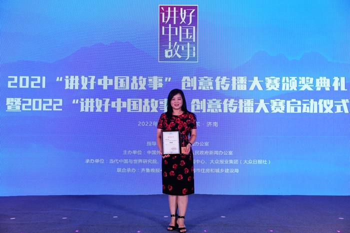 7月19日,由国务院新闻办公室指导,中国外文出版发行事业局、山东省人民政府新闻办公室主办的2021“讲好中国故事”创意传播大赛颁奖典礼暨2022“讲好中国故事”创意传播大赛启动仪式在济南举行。我校报送的短视频作品《金声传古道》荣获特等奖,《这一拳,生生不息》荣获二等奖,学校被大赛组委会授予优秀承办单位。