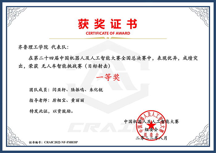 近日,第24届中国机器人及人工智能大赛全国总决赛落下帷幕,我校学生经过省赛选拔三支队伍进入全国总决赛,并一举获得无人车挑战赛一等奖,四足仿生机器人小型组二等奖,四足仿生机器人中型组三等奖的好成绩。