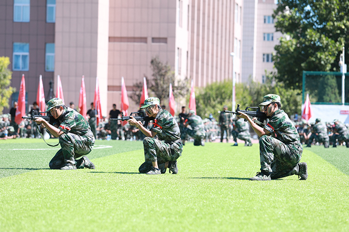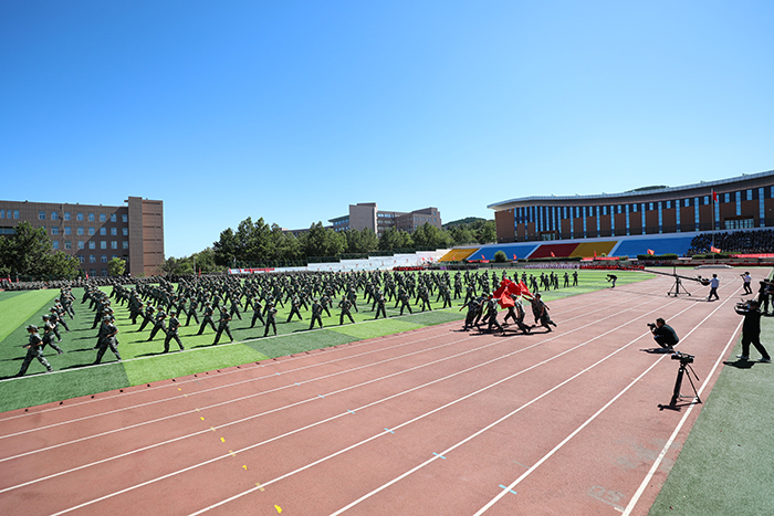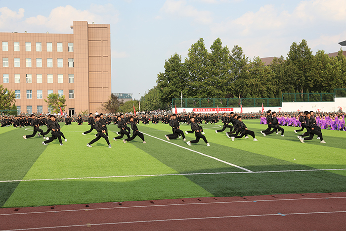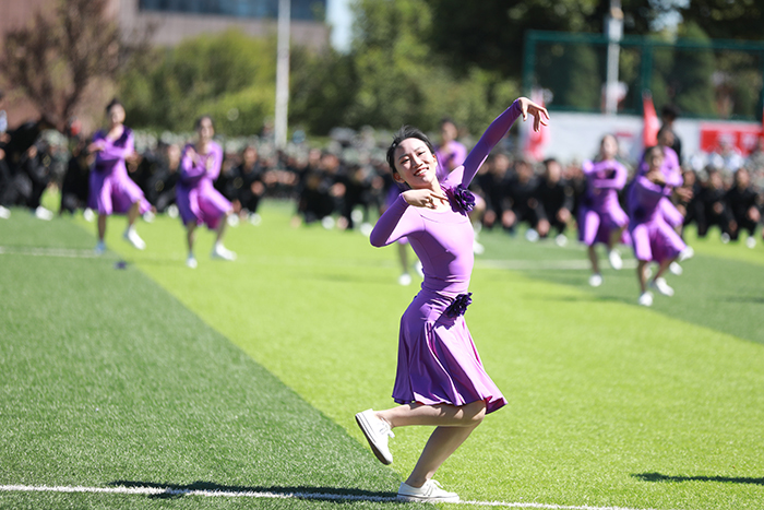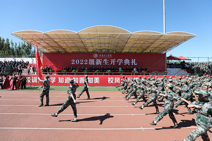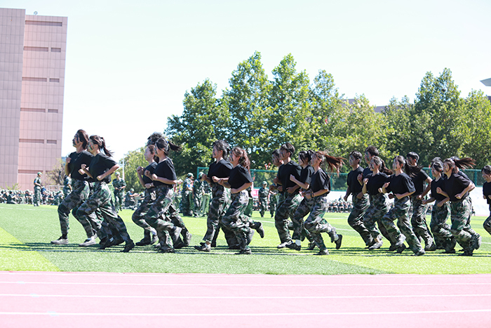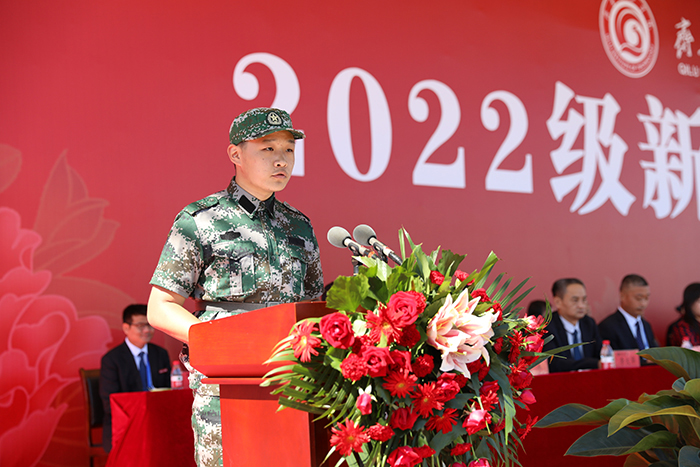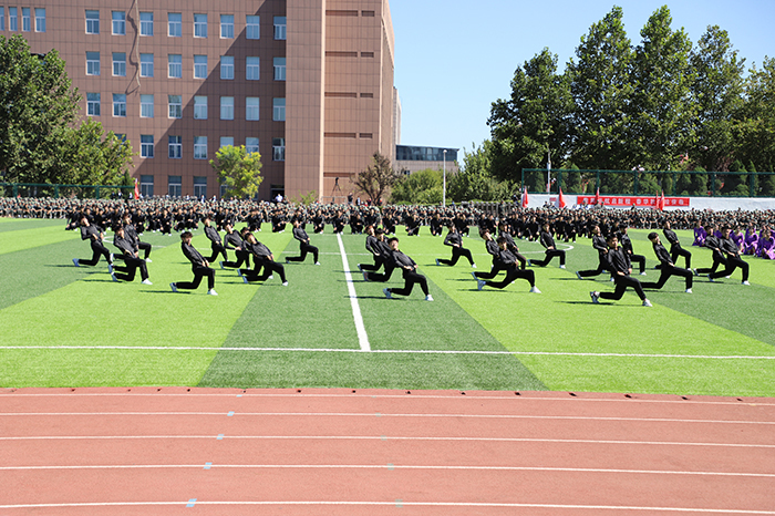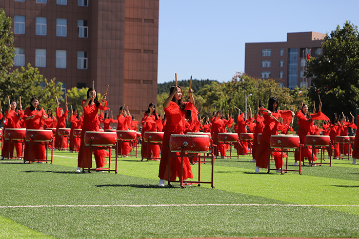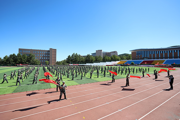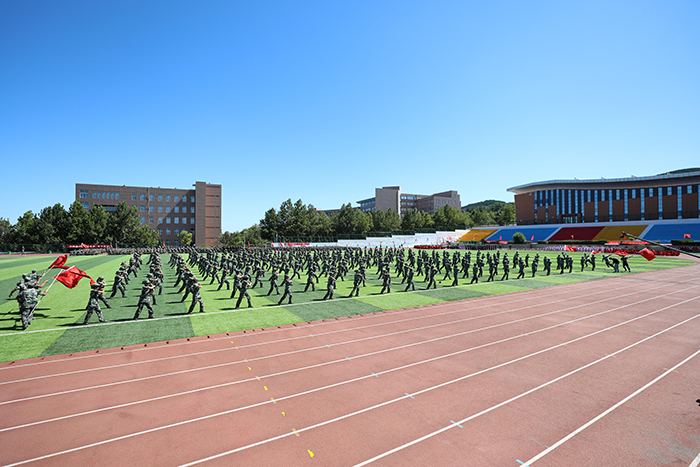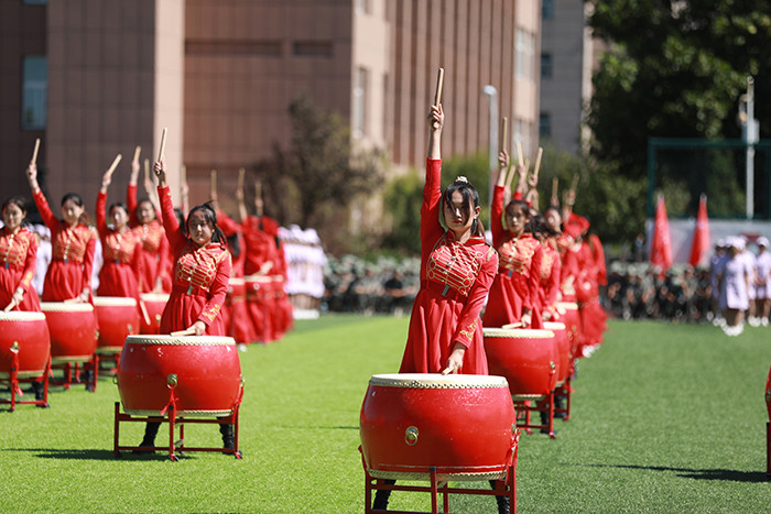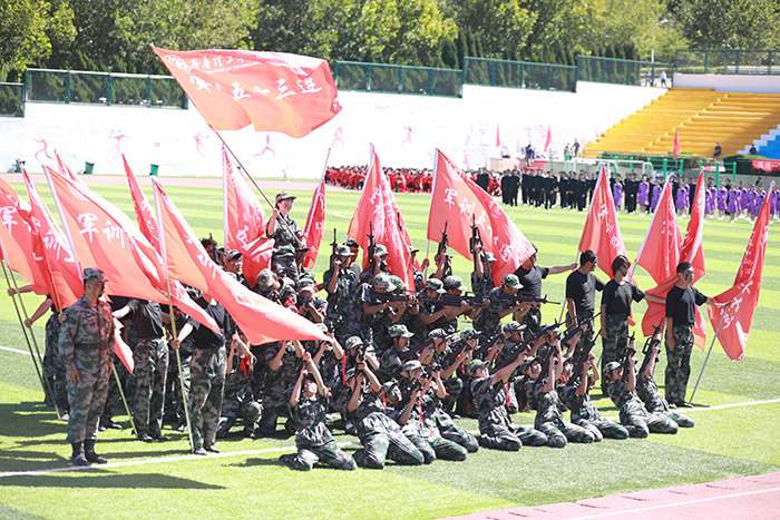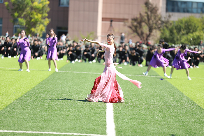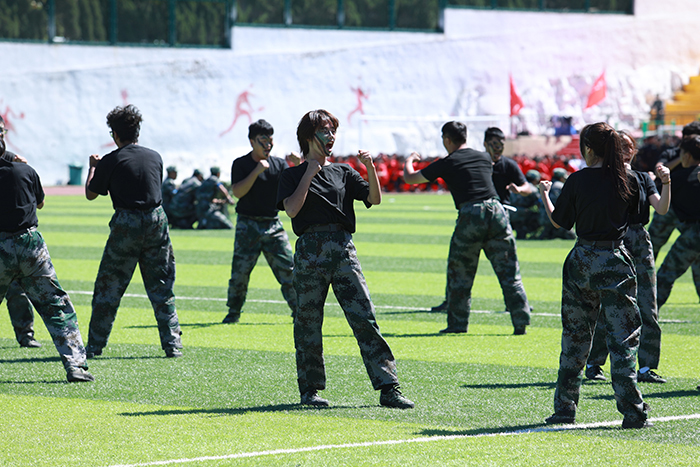 2022级新生进行了精彩的表演。红鼓舞《胜利锣鼓》大气开场,鼓声雷动,气势浩荡;手语舞蹈《听我说谢谢你》温馨感人,正能量满满;军事技能表演《军体拳》、《枪战术》动作铿锵有力、一气呵成,一招一式尽显果敢、坚毅与自信;拉丁舞《让我们荡起双桨》热情欢快、动感十足;《论语金句》经典诵读尽显齐鲁风韵;校园舞《一起向未来》活力四射,青春洋溢。