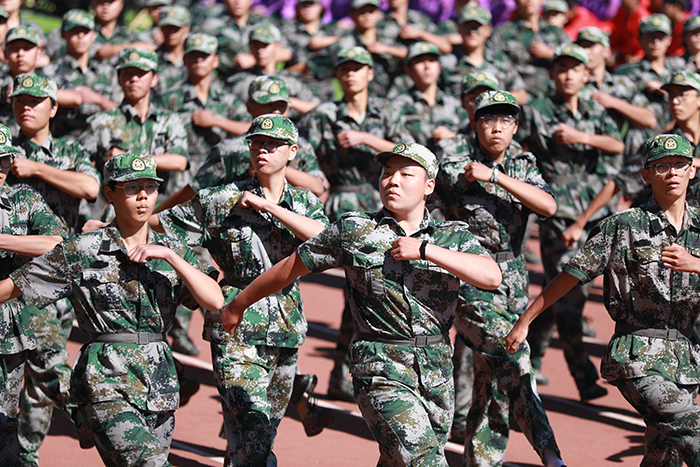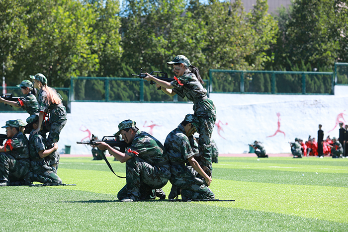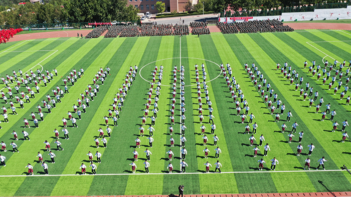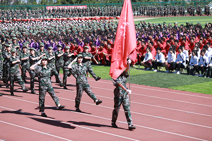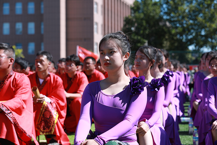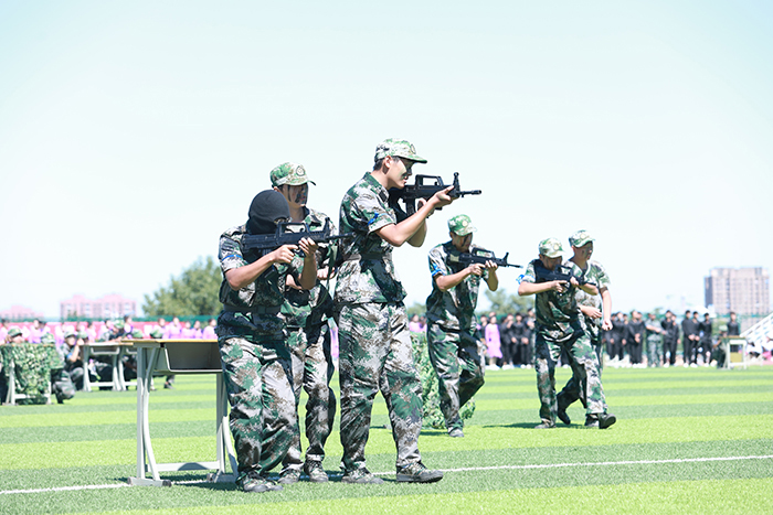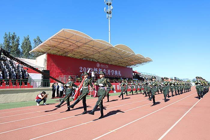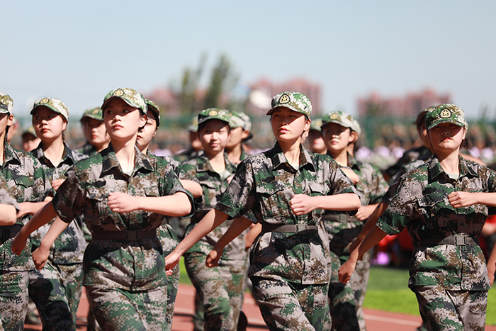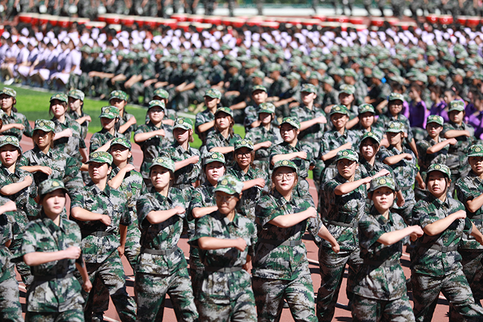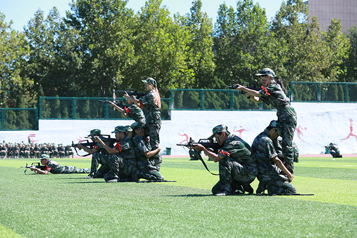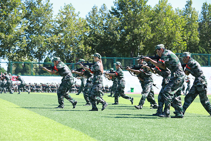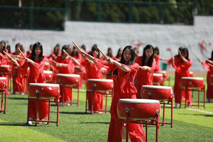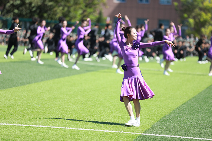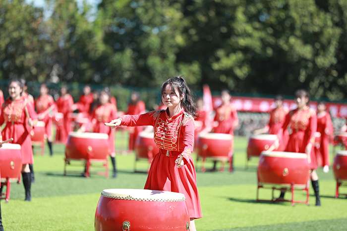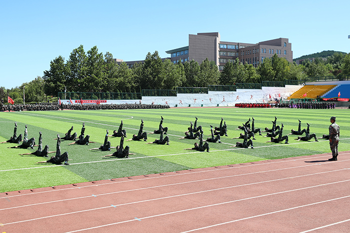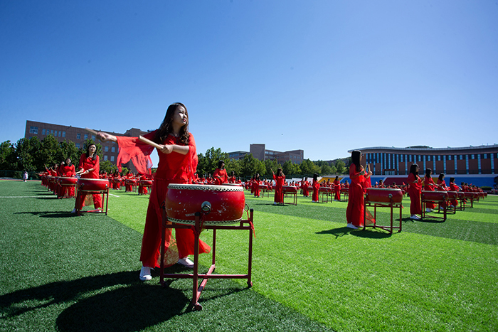 2022级新生进行了精彩的表演。红鼓舞《胜利锣鼓》大气开场,鼓声雷动,气势浩荡;手语舞蹈《听我说谢谢你》温馨感人,正能量满满;军事技能表演《军体拳》、《枪战术》动作铿锵有力、一气呵成,一招一式尽显果敢、坚毅与自信;拉丁舞《让我们荡起双桨》热情欢快、动感十足;《论语金句》经典诵读尽显齐鲁风韵;校园舞《一起向未来》活力四射,青春洋溢。