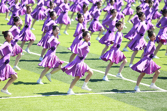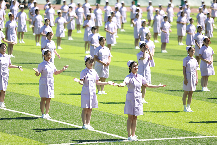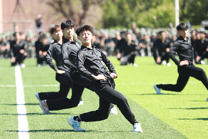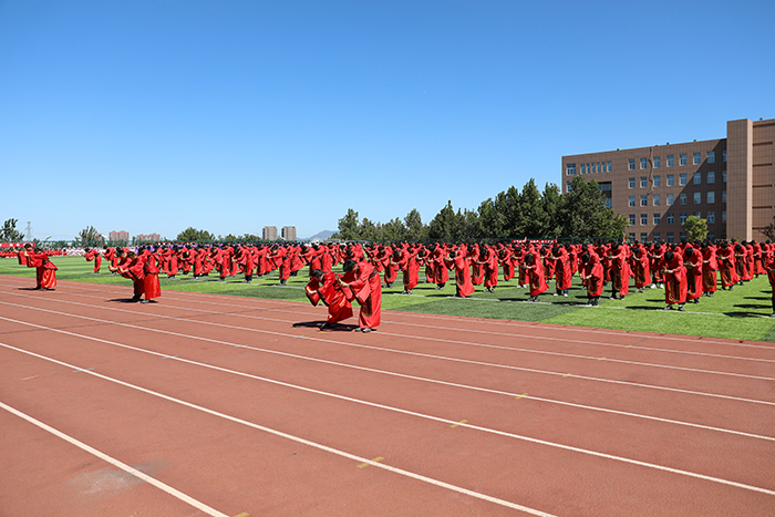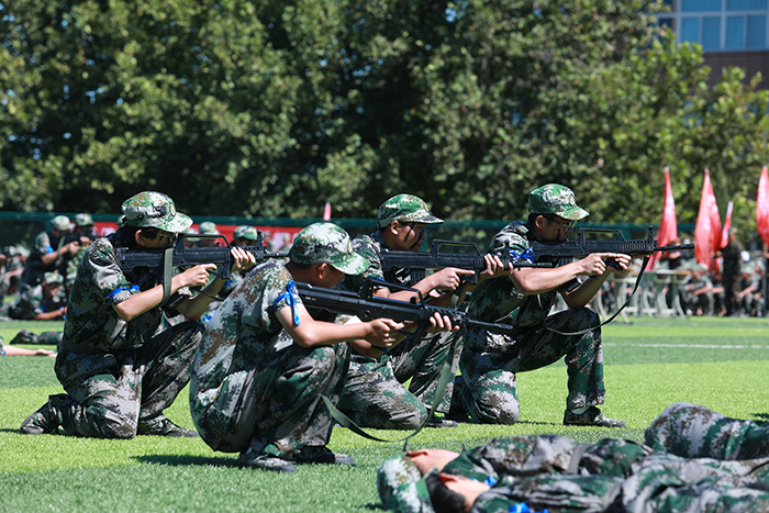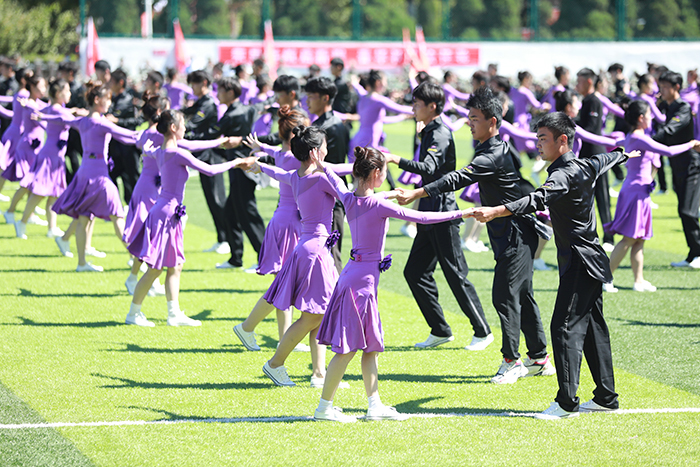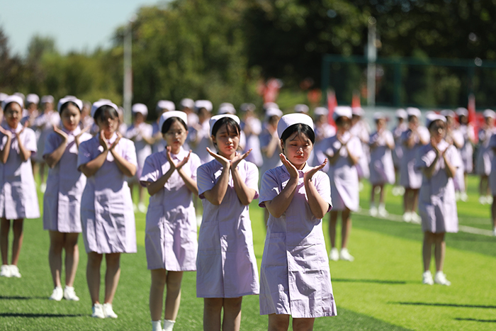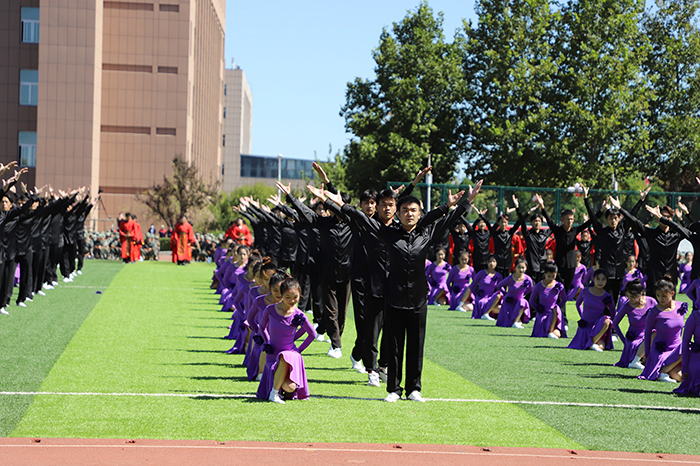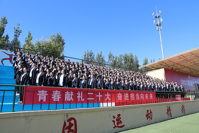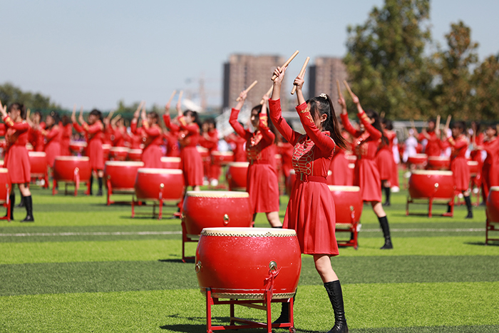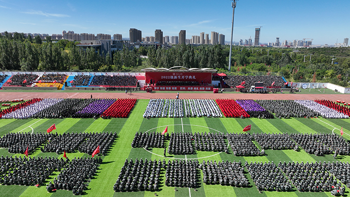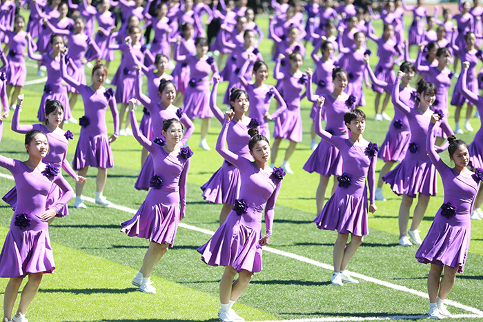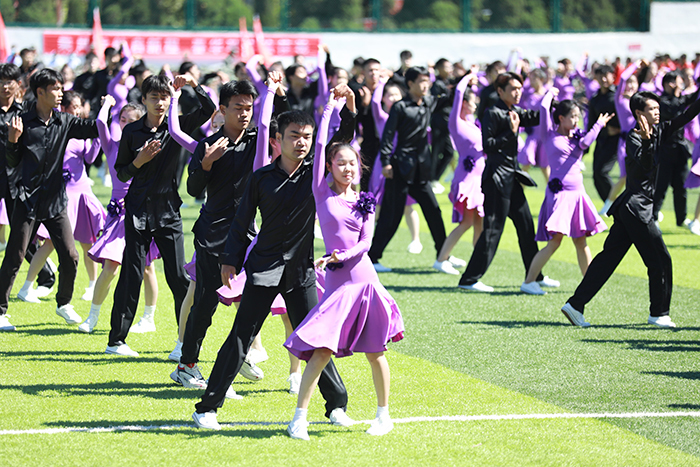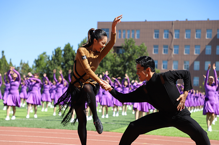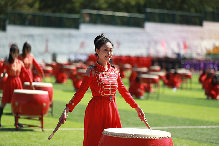 2022级新生进行了精彩的表演。红鼓舞《胜利锣鼓》大气开场,鼓声雷动,气势浩荡;手语舞蹈《听我说谢谢你》温馨感人,正能量满满;军事技能表演《军体拳》、《枪战术》动作铿锵有力、一气呵成,一招一式尽显果敢、坚毅与自信;拉丁舞《让我们荡起双桨》热情欢快、动感十足;《论语金句》经典诵读尽显齐鲁风韵;校园舞《一起向未来》活力四射,青春洋溢。