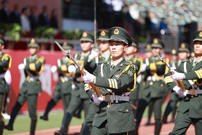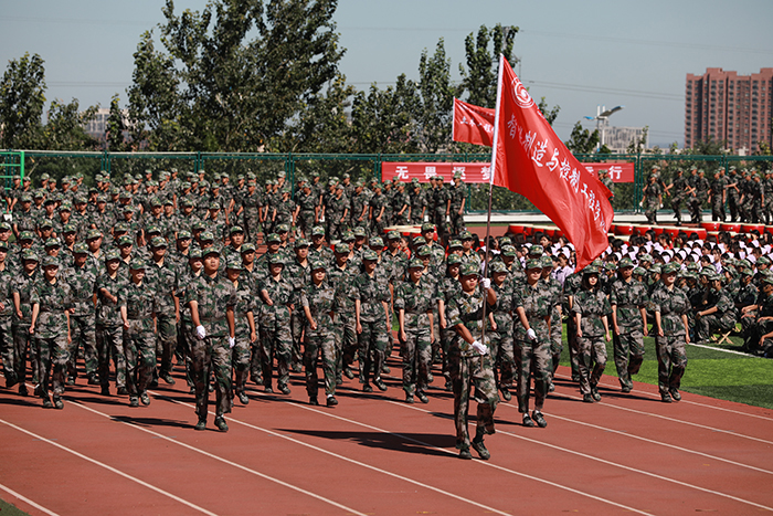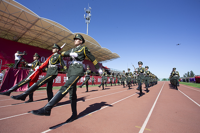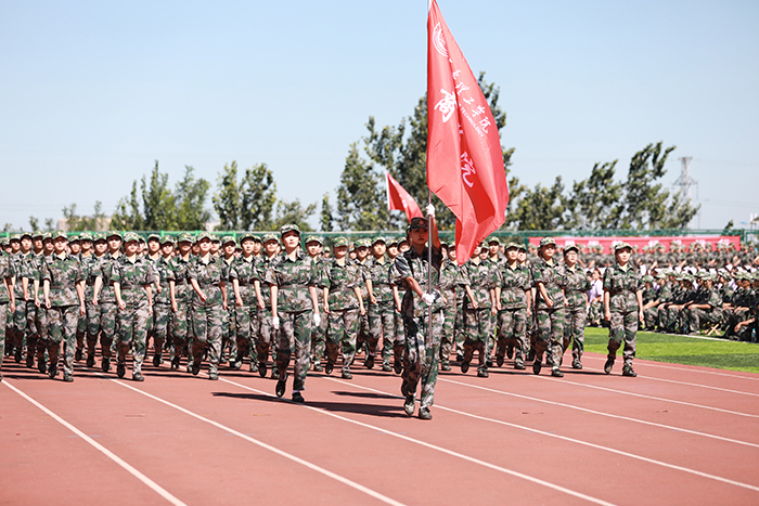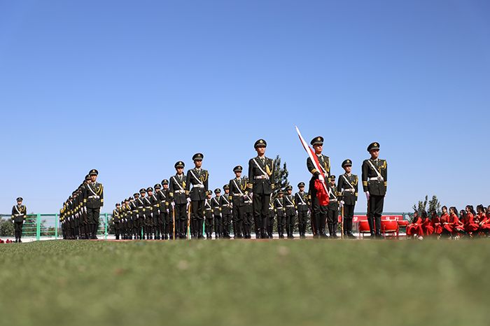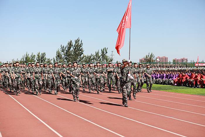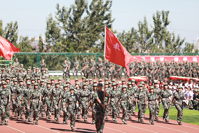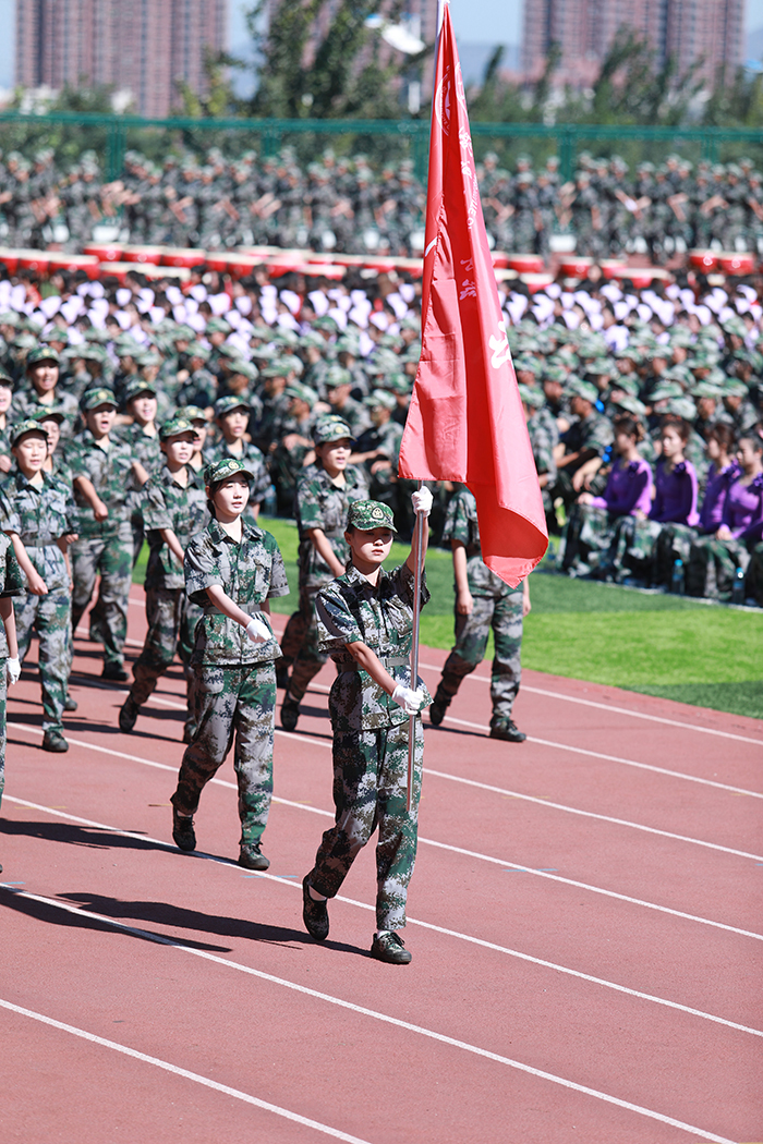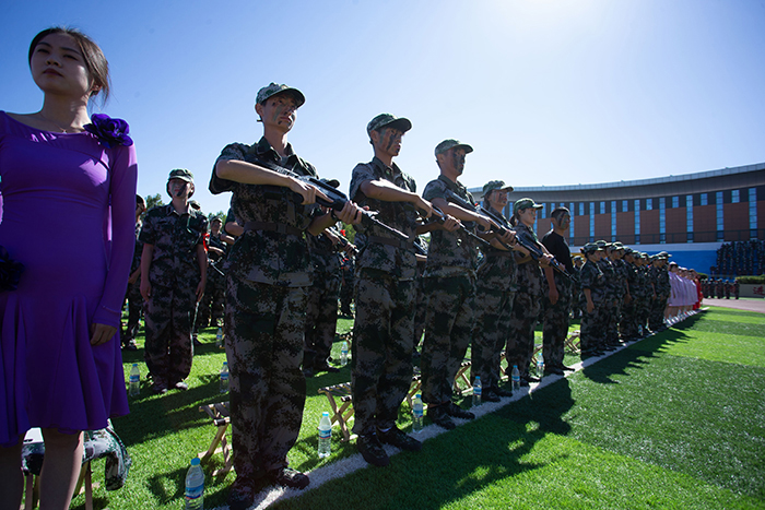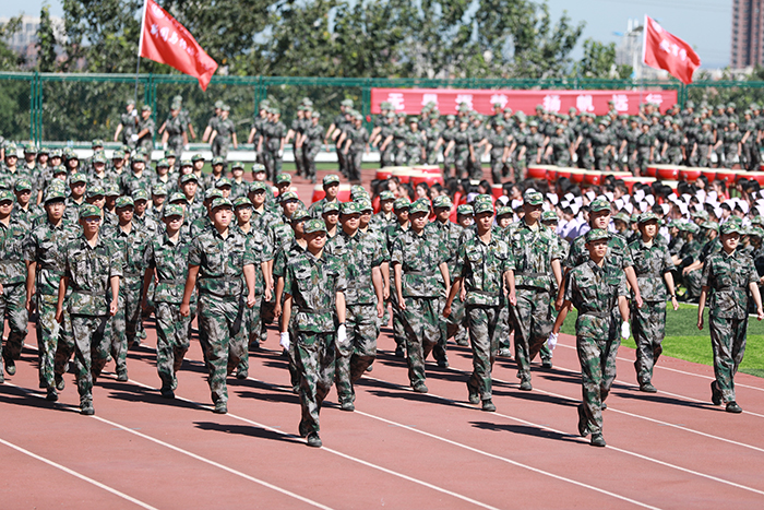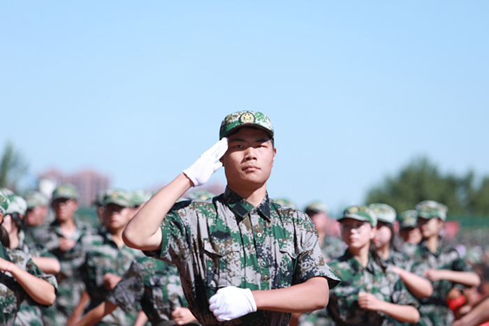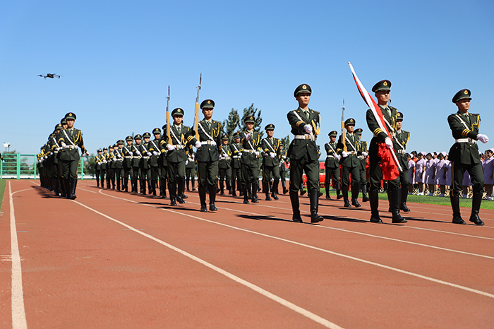 军训汇演开始,各方队迈着整齐的步伐,先后从主席台前走过,他们精神饱满、斗志昂扬,飒爽的英姿展现了齐鲁理工学子蓬勃的朝气。典礼伊始,全体起立,奏唱国歌,鲜艳的五星红旗冉冉升起。