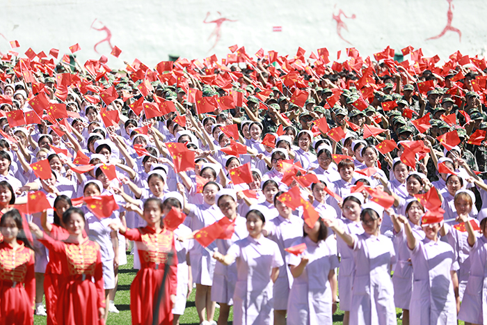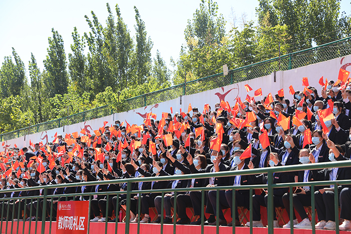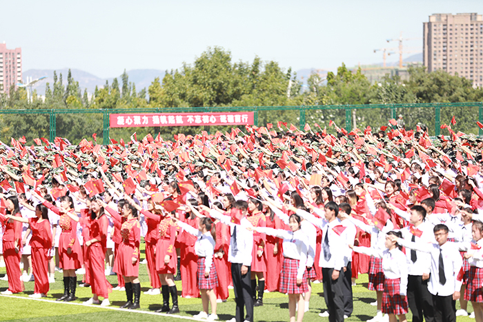 典礼最后,全场起立,挥舞着国旗一同献唱《我的祖国》,表达了全校师生对伟大祖国繁荣昌盛的美好祝愿,为典礼画上圆满的句号。