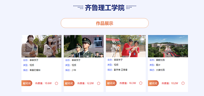 本次活动由中国教育在线主办,涵盖“景靓校园、莘莘学子、园丁风采、领域建设、思政教育”五大主题,是展现山东高校办学与专业特色的宣传媒介和重要窗口。全省参与高校近50所,经过中国教育在线编辑中心和专家组的筛选,优选28所学校作品予以展示,我校荣获“最佳组织单位奖”,四部作品入选展示活动。
