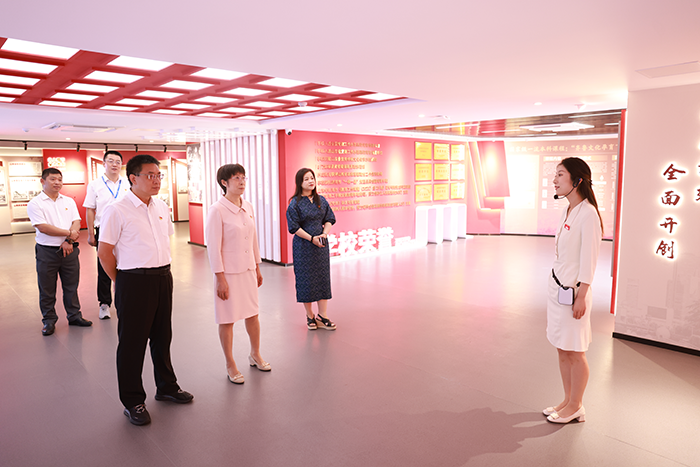 座谈结束后,武峰一行查看了学校党建工作材料,对全国首批党建工作样板支部、“一站式”学生社区、山东党史馆、齐鲁文化馆等地进行了实地考察调研。