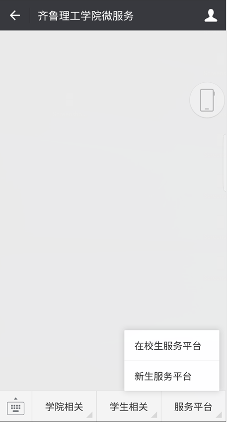 2、关注后,点击右下角的“服务平台”模块-新生服务平台